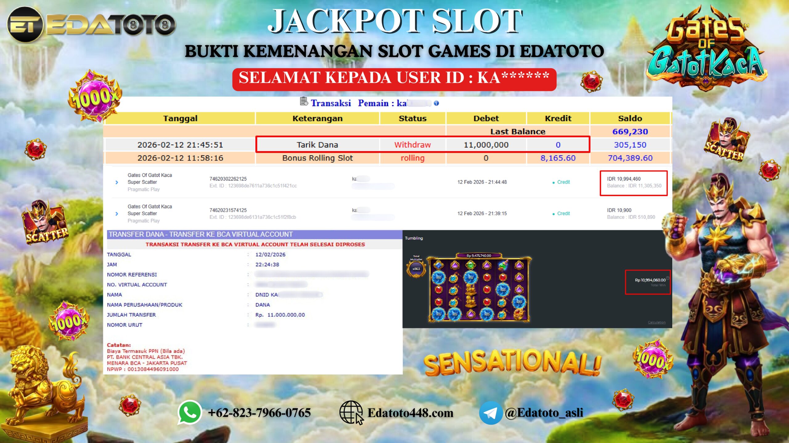 Selamat kepada member setia EDATOTO telah mendapatkan JP Bermain Di : Gates of Gatot Kaca Super Scatter