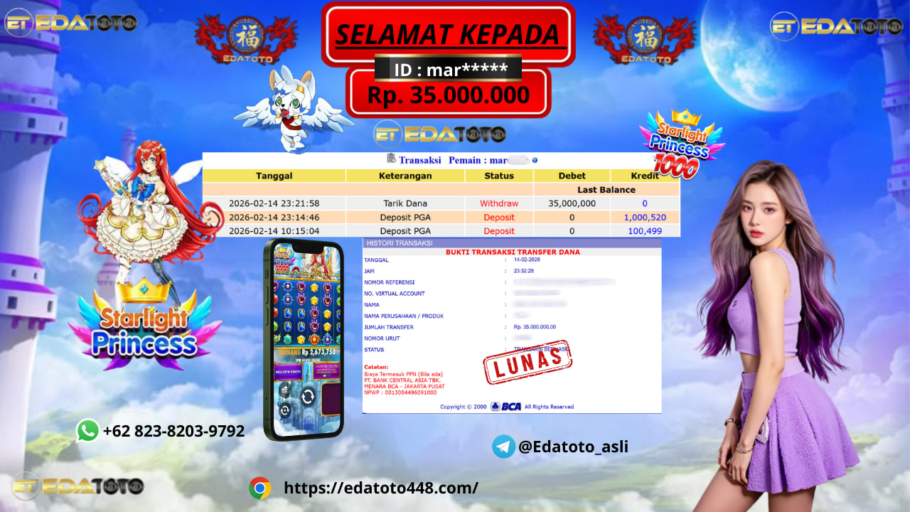 Selamat kepada member setia EDATOTO telah mendapatkan JP Bermain Di : Starlight Princess Super Scatter